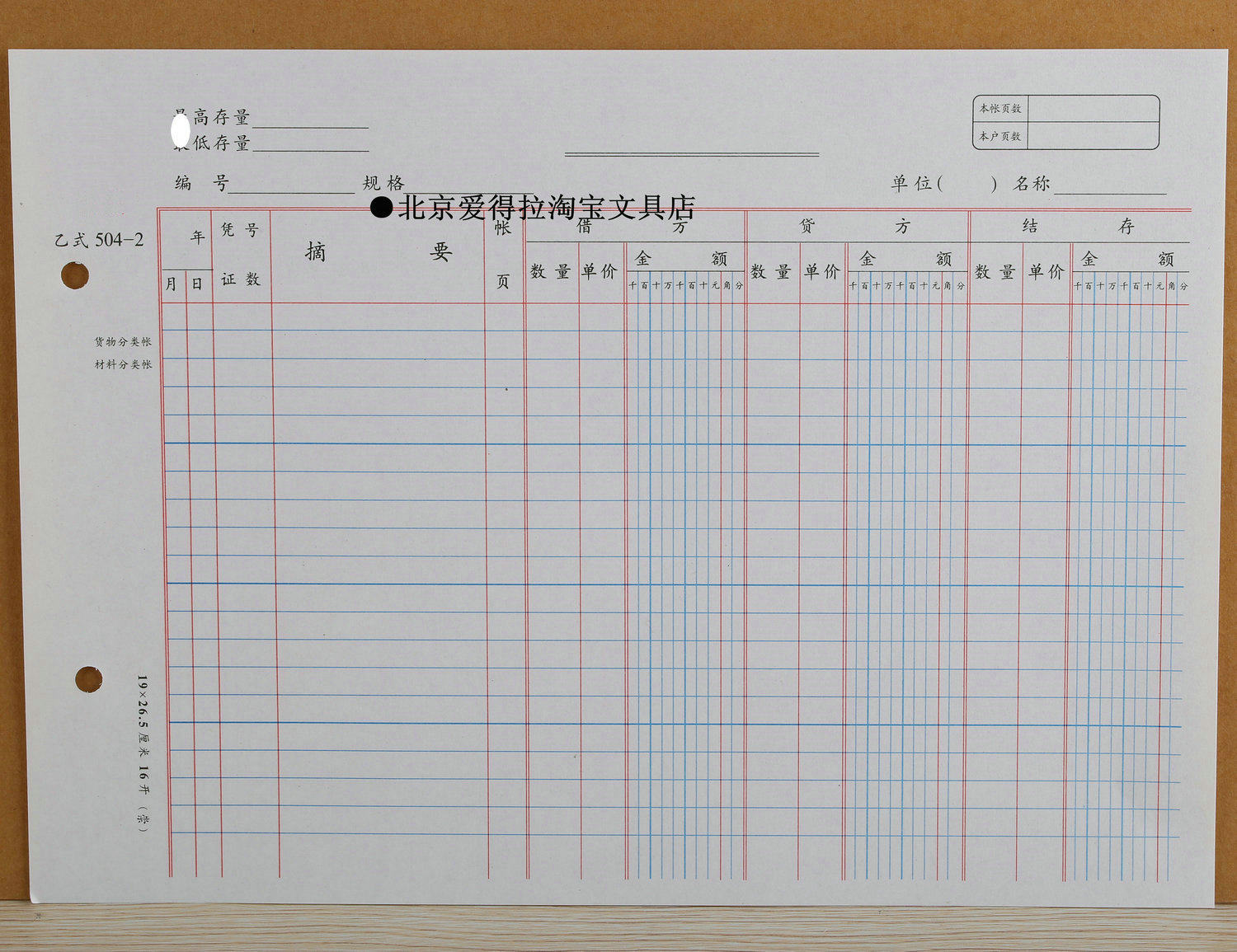 乙式504-2 数量金额式明细账账本 出入库库管数量 库存材料明细账