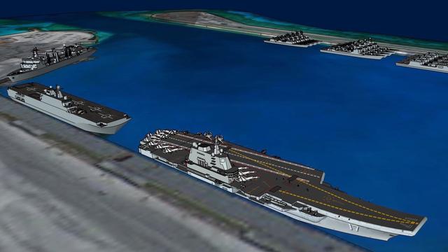 镇守中国南海!001a航母编队停靠永暑岛cg图