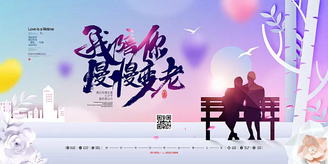 七夕展板模板 情人节活动爱情表白商场促销打折PSD设计素材横板|