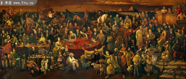 油画赏析:《与但丁讨论神曲》里有100位中外名人,你能认出多少
