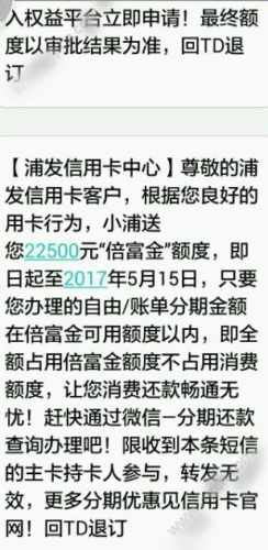 鉴于良好用卡行为,浦发特供倍富金额度5万,