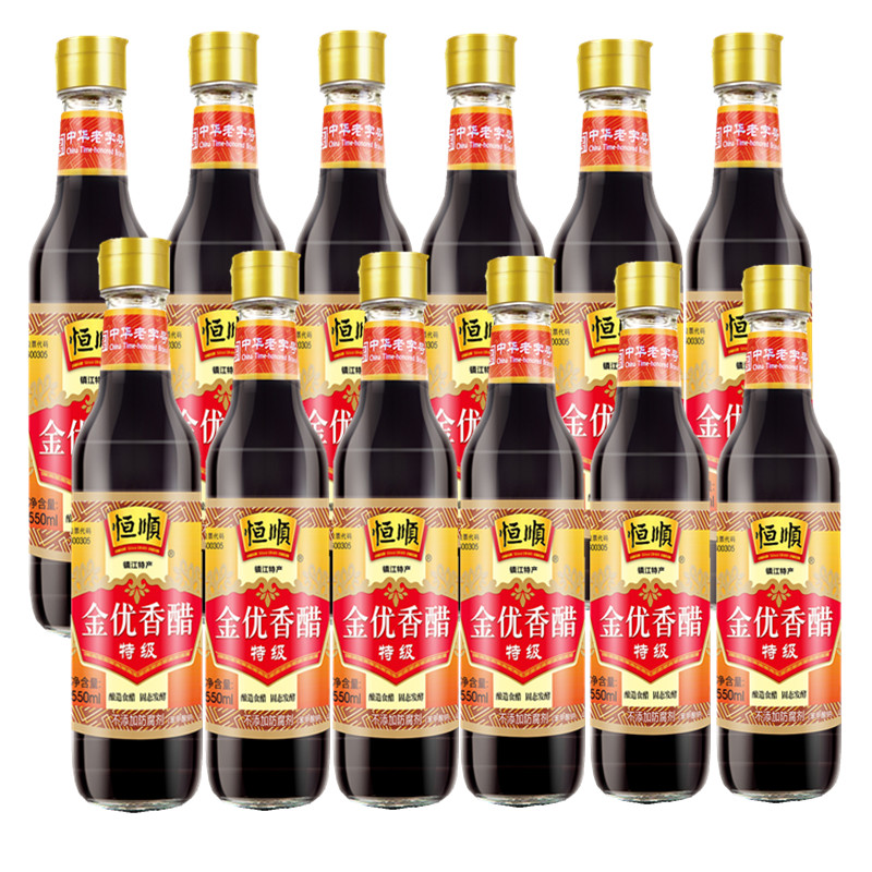 镇江香醋恒顺金优特级香醋550ml*12瓶整箱糯米酿造蘸料凉拌食用醋