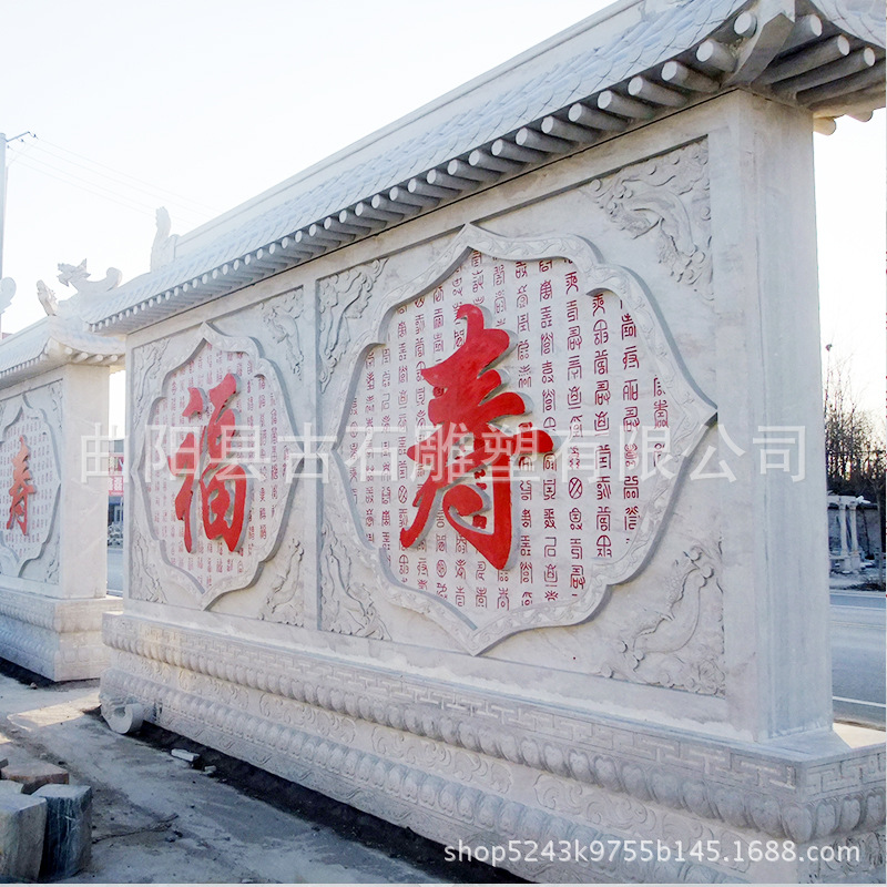 工厂定制庭院福字 影壁墙石刻 青石浮雕 别墅照壁 寺庙影壁墙