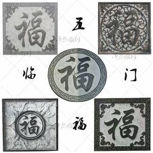 [影壁照壁砖雕]砖雕浮雕装饰照壁福字圆仿古砖雕影壁墙老青砖照壁富贵牡丹