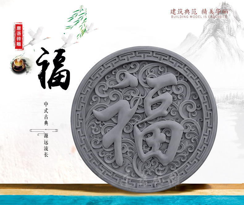 唐语砖雕 仿古砖雕 古建砖雕 圆形福字影壁照壁装饰挂画φ1米福
