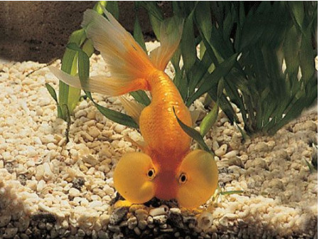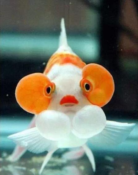 眼睛酷似挂着两个气球的蛋种金鱼--水泡眼