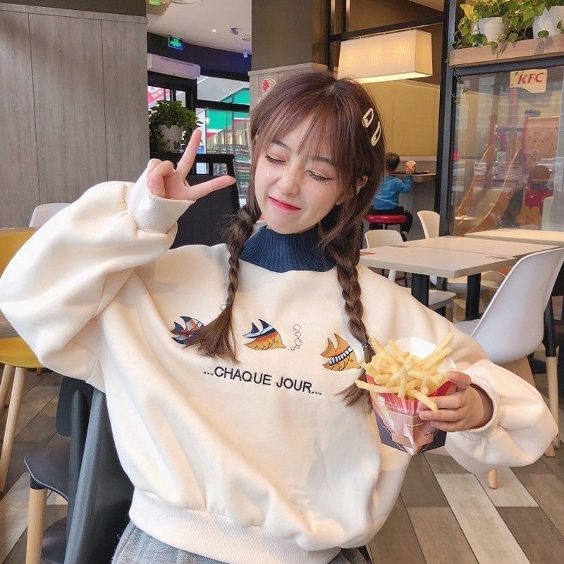 春秋季卫衣女学生韩版ins半高领潮宽松