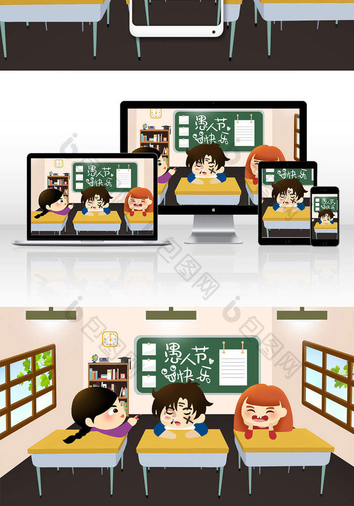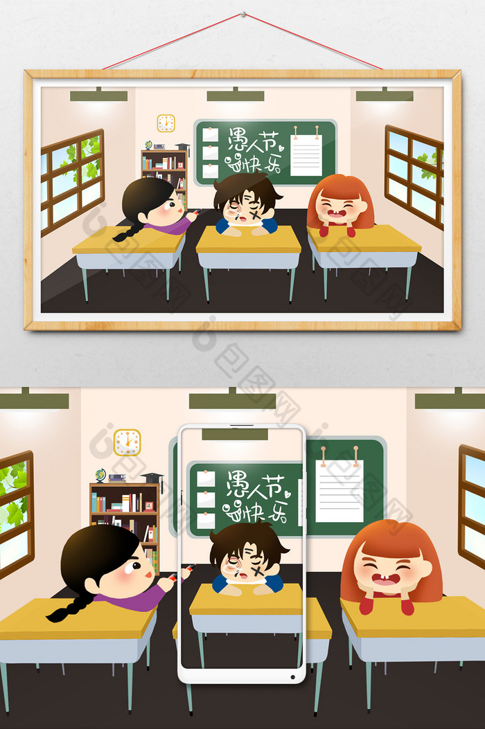 清新卡通4.1愚人节校园恶作剧插画