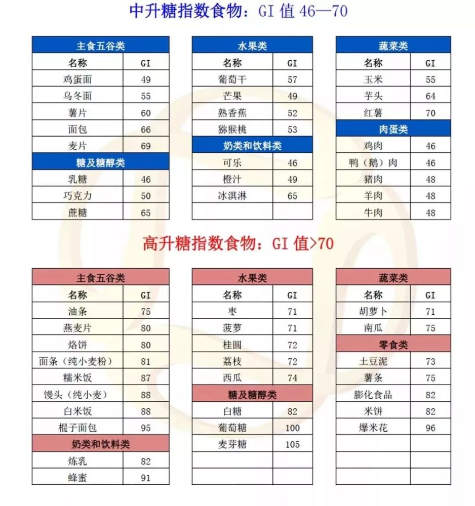 控糖必备的N种常见食物GI、GL表】