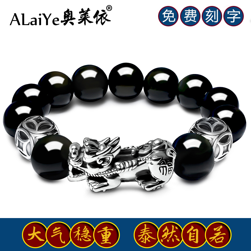 【貔貅黑曜石手链图片】貔貅黑曜石手链