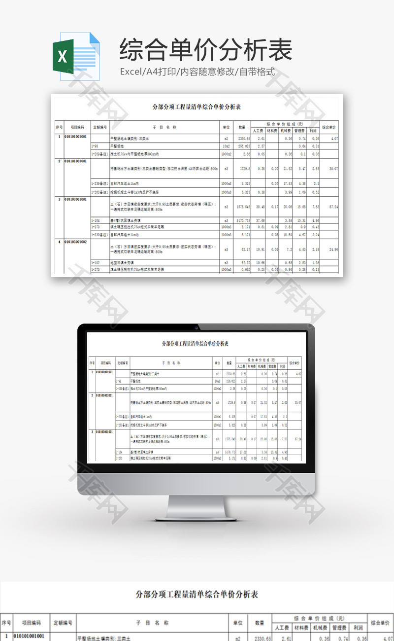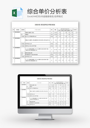 综合单价分析表Excel模板_千库网(excelID: