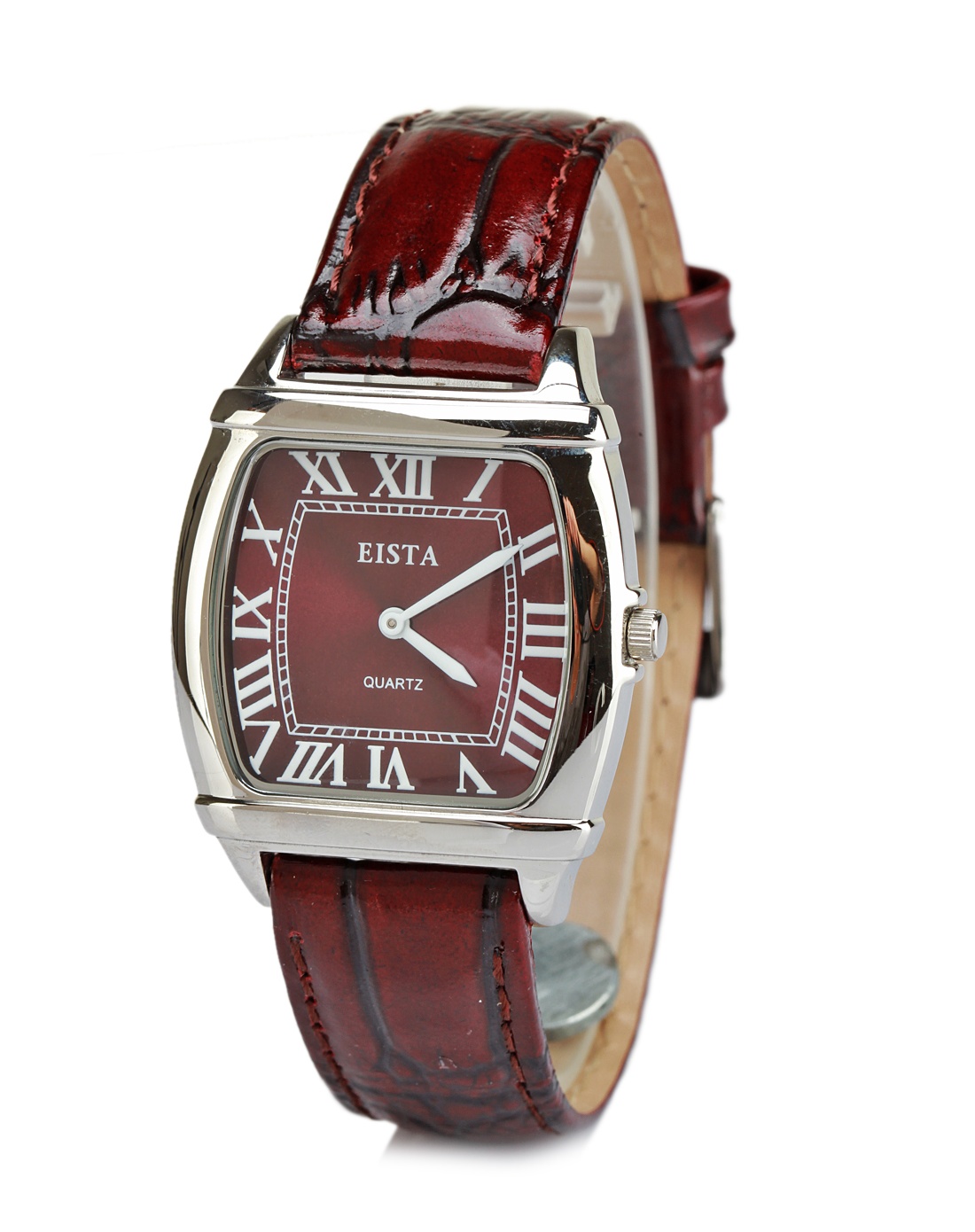 亚时达EISTA女款枣红\/白进口镜片皮带石英