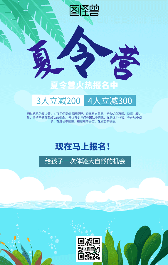 夏令营优惠动图手机海报