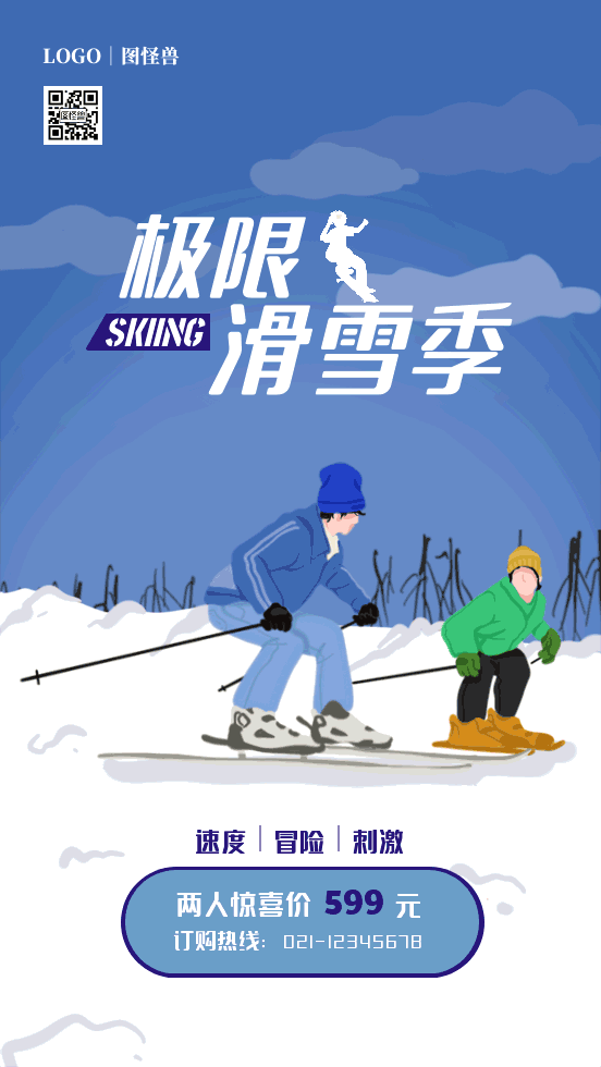 插画风滑雪场宣传优惠海报gif模板
