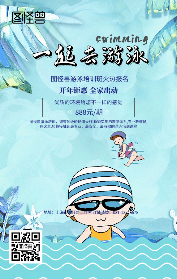 游泳优惠动图手机海报
