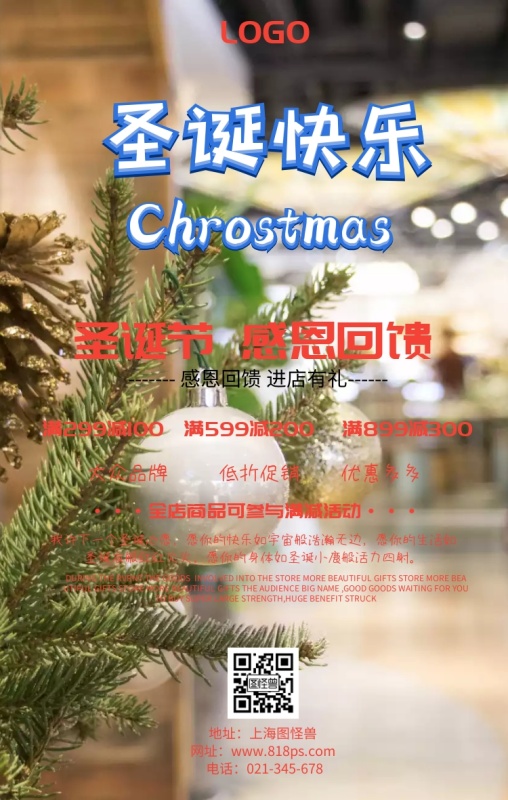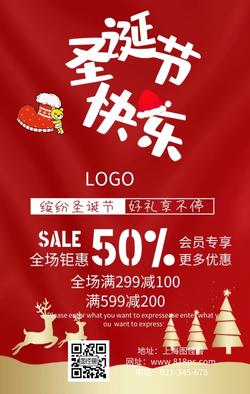 圣诞节促销优惠满减海报