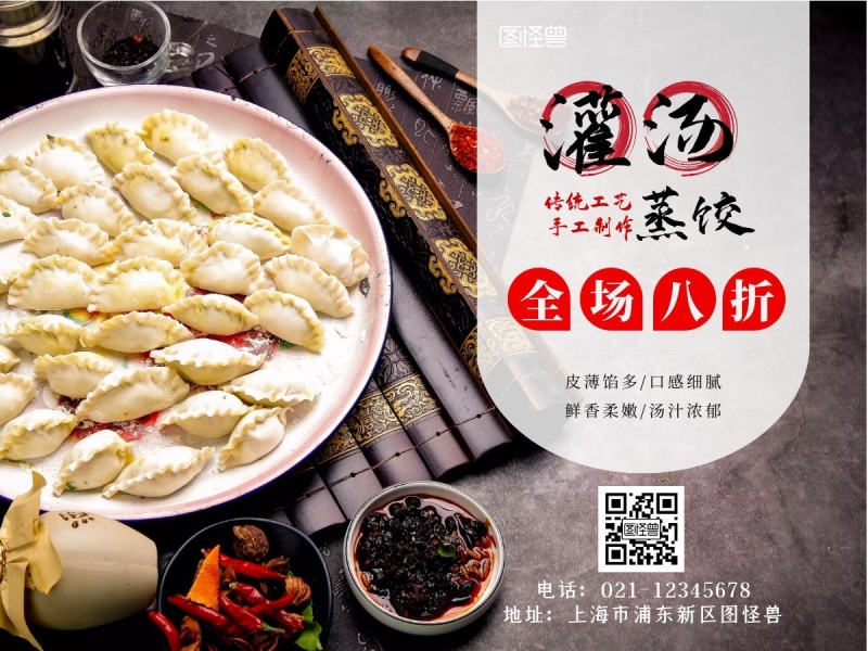 灌汤水饺八折优惠促销海报