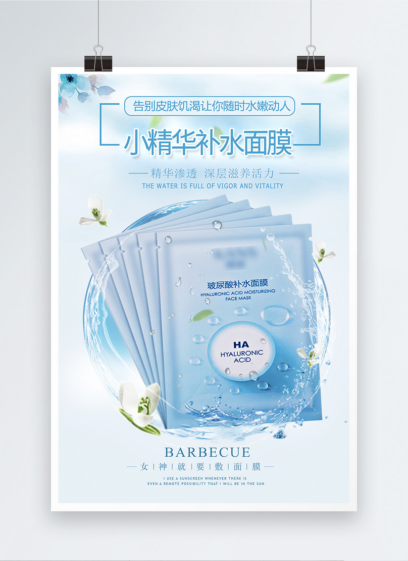 玻尿酸补水韩国原装面膜海报设计设计图__