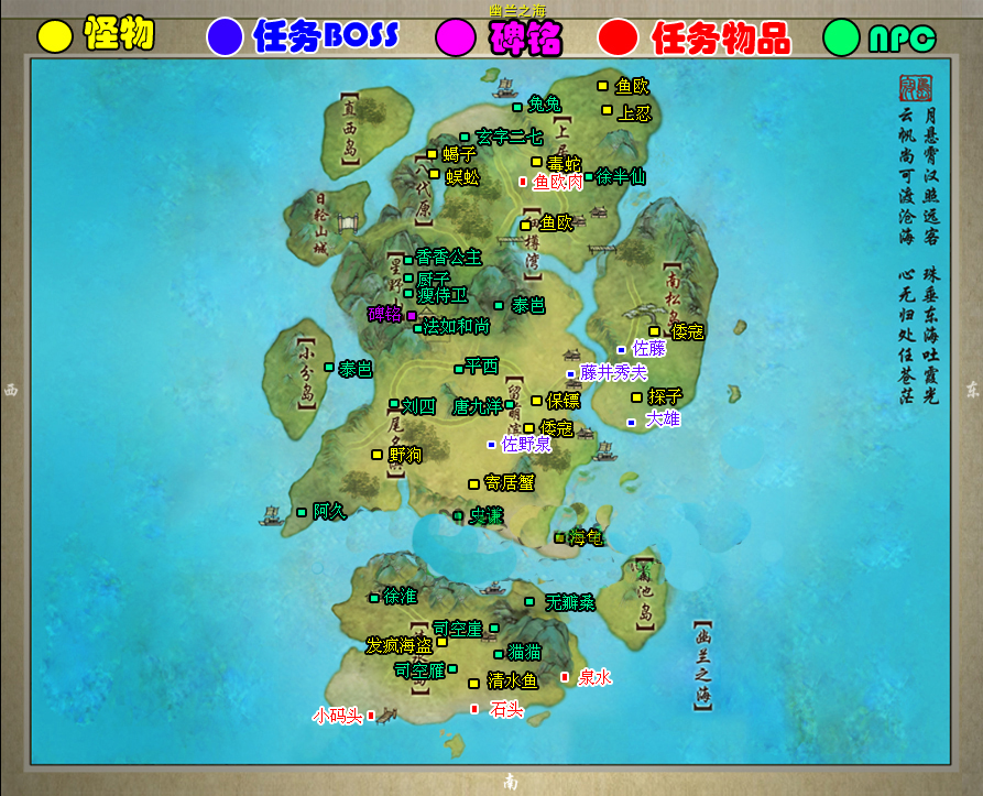 剑侠情缘3各区域BOSS与碑铭分布-寇岛_