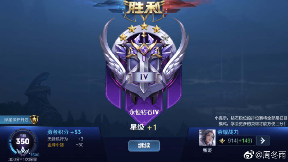 周冬雨晒王者荣耀战绩 求助网友甄姬如何