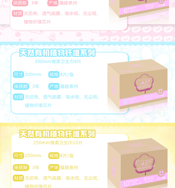 沐舒天然有机植物纤维卫生巾8片