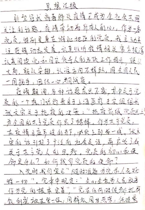 疫 | 战疫党员之声--来自湖北的思想汇报
