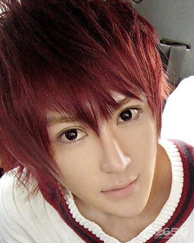 男生浅酒红色头发图片 男生紫红色头发(3)