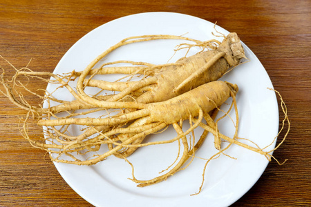 韩国人参木制板上
