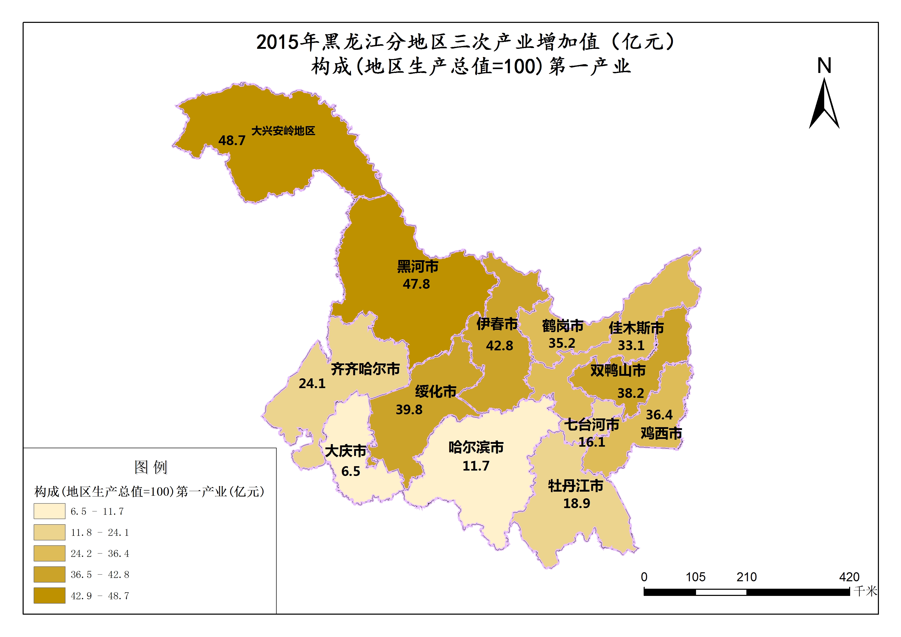 2015年黑龙江分地区三次产业增加值-构成(地区生产总值=100)第一产业