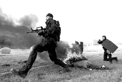 街头发疯砸店闹事 特警用钢叉将其制服(图)