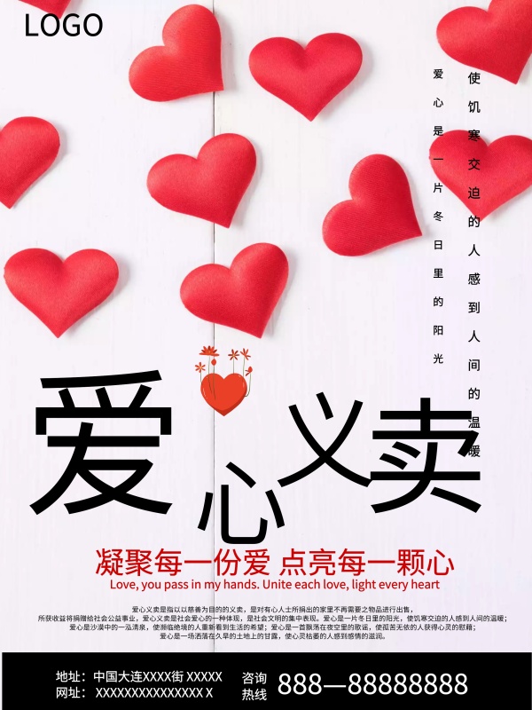 手绘复古风爱心义卖海报