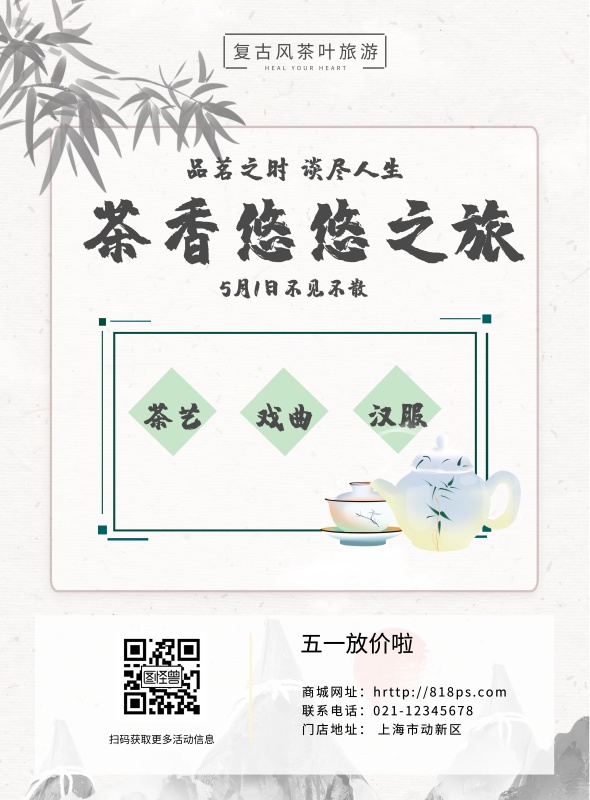 复古风茶叶旅游主题海报