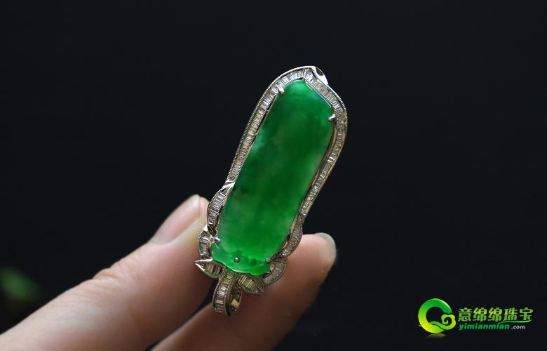 老坑冰种满绿天然翡翠A货玉四季豆镶金钻