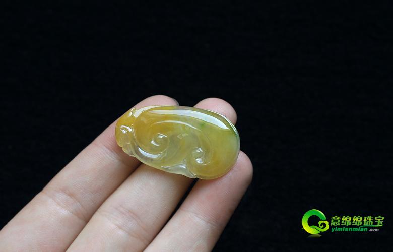 缅甸老坑冰种天然黄翡翠A货玉如意吊坠-