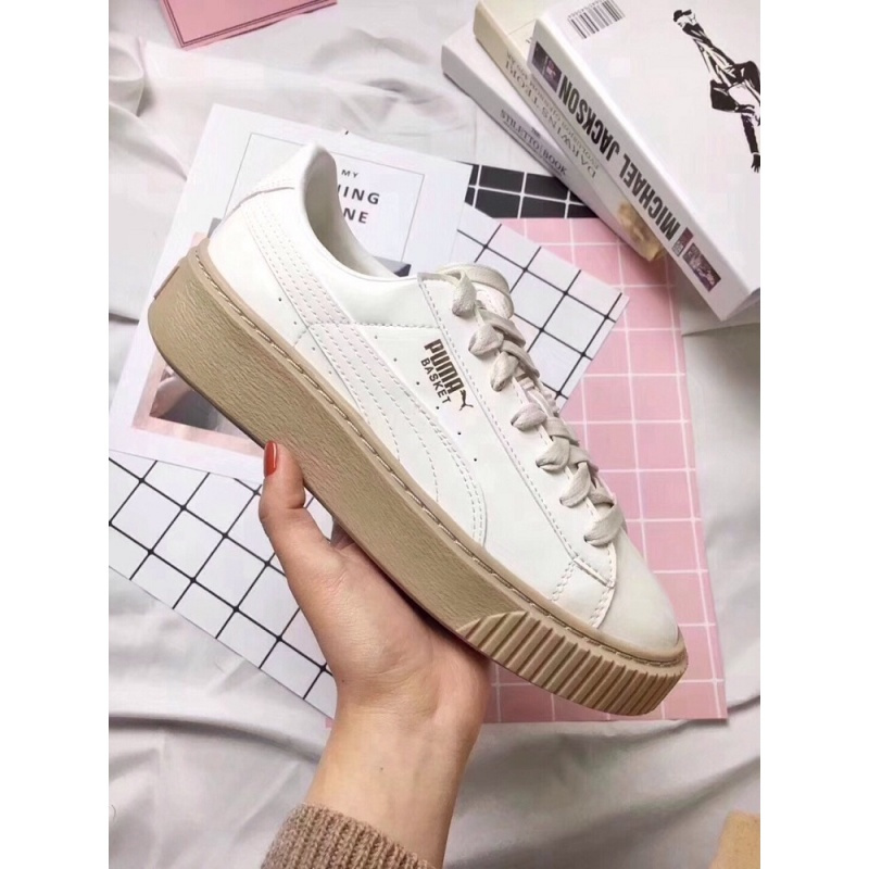 Puma Basket Platform彪马女鞋奶白漆皮松糕鞋 蕾哈娜板鞋363314-05