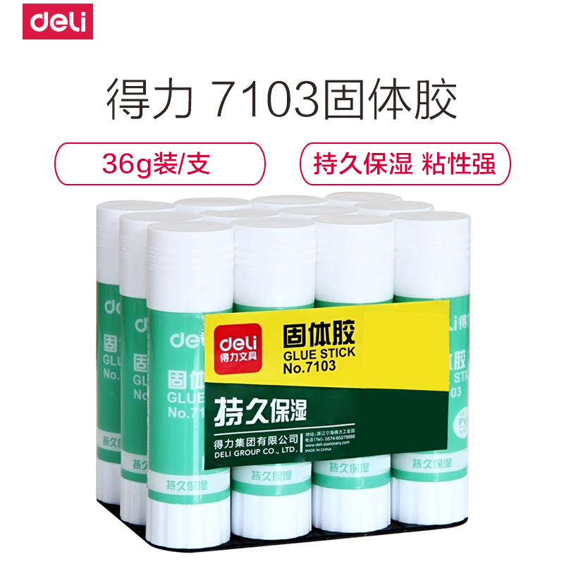 得力(deli)7103固体胶棒强力固体胶36g大号办公用品固体胶棒粘性好持久