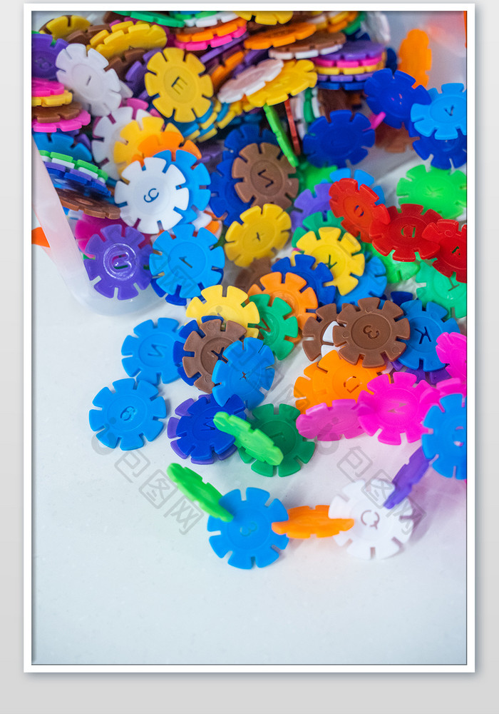 六一儿童节五彩雪花片玩具智力开发摄影图