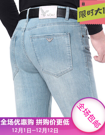 阿玛尼男装裤子牛仔裤男款薄商务休闲直筒