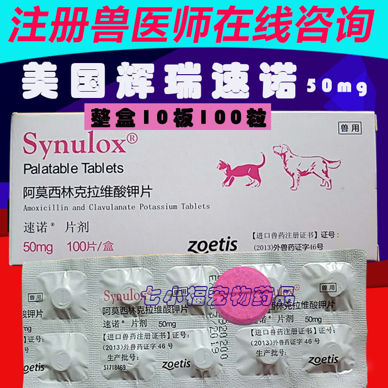 synulox速诺片猫50mg宠物狗狗感冒咳嗽猫