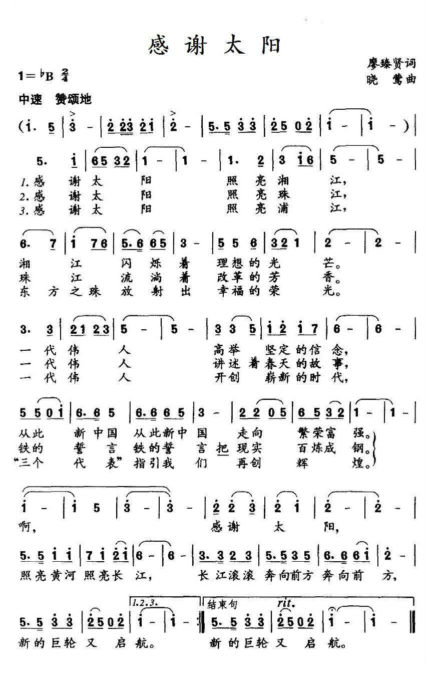 感谢太阳 歌谱 简谱