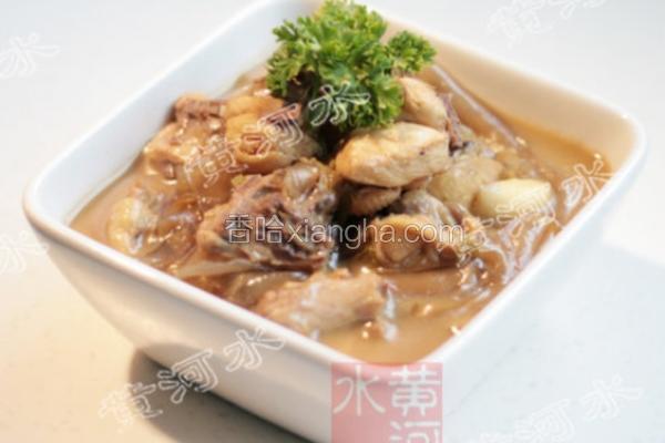 简介:熬炒鸡是一道美食,由鸡、绿豆粉皮等原料制作而成。做法1、鸡洗净,剁块;粉皮泡软,撕成片;葱、姜、蒜切大