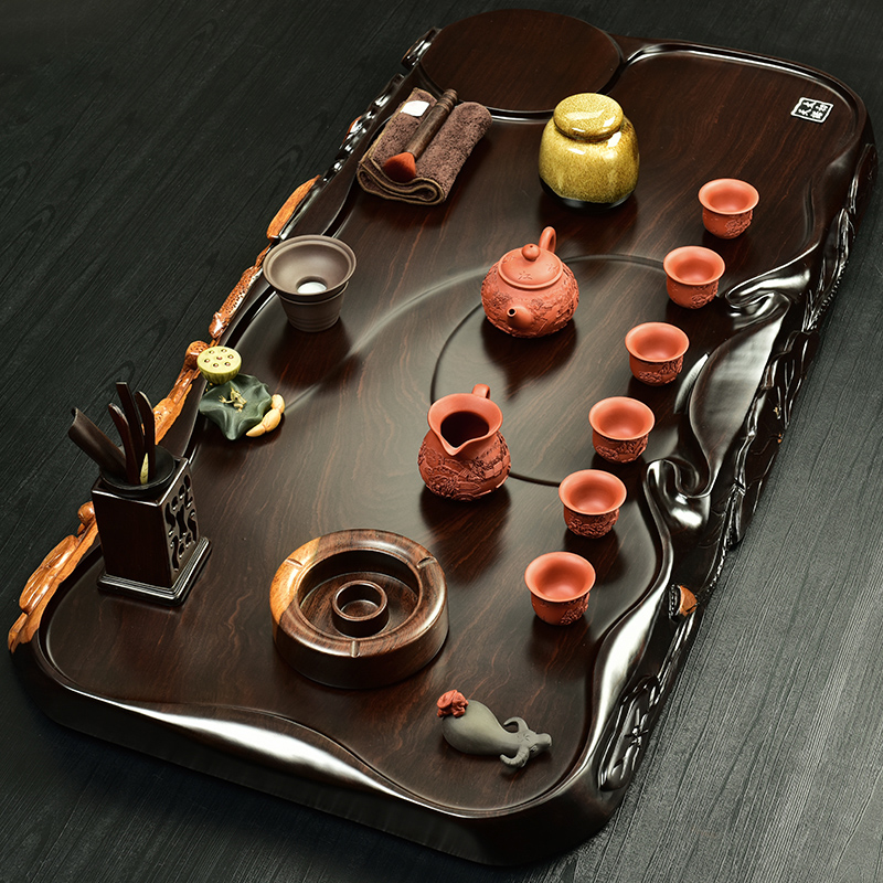 Tctiannuo\/太初天诺 防烫茶具木茶台茶壶茶具 黑檀木茶盘荷塘春色茶盘套装