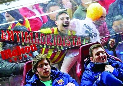 梅西遭本队球迷恶搞 身后现C罗充气娃娃(图)