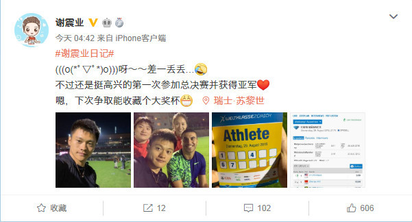 接力队闯进田径世锦赛 谢震业微博艾特错