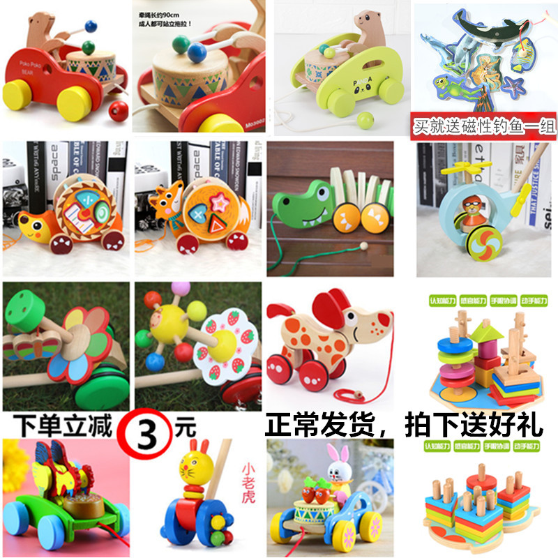 拖拉学步木质玩具制作小孩拉车儿童小拖车