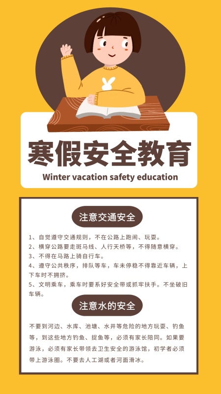 创意黄色卡通寒假安全教育手机海报
