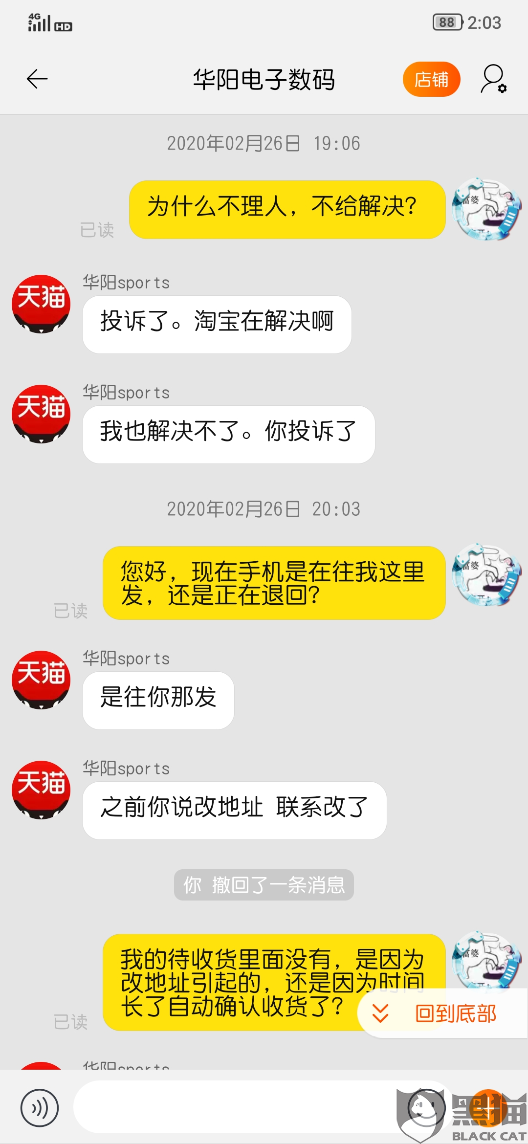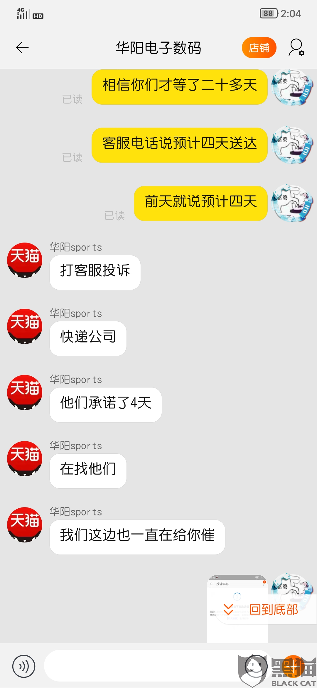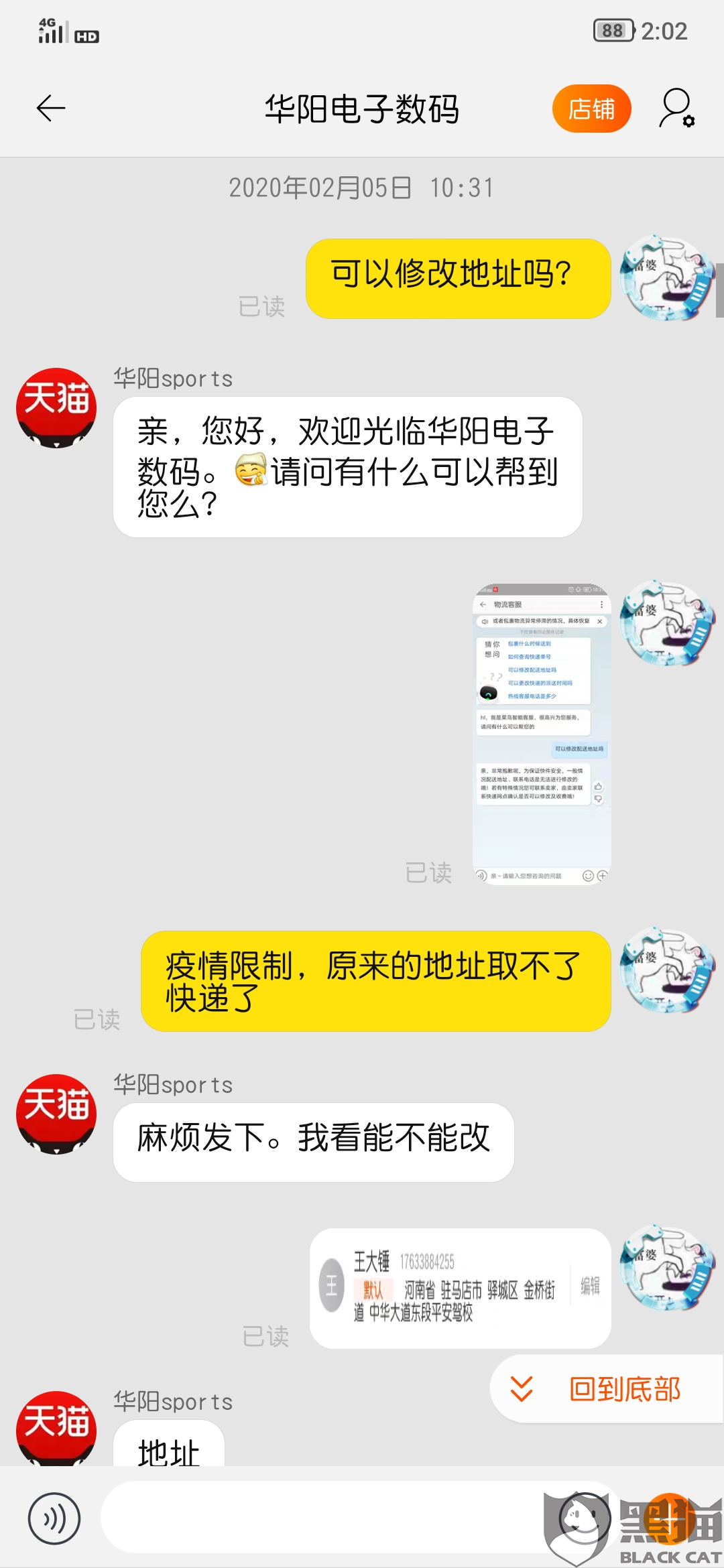 淘宝的售后与客服咨询对话