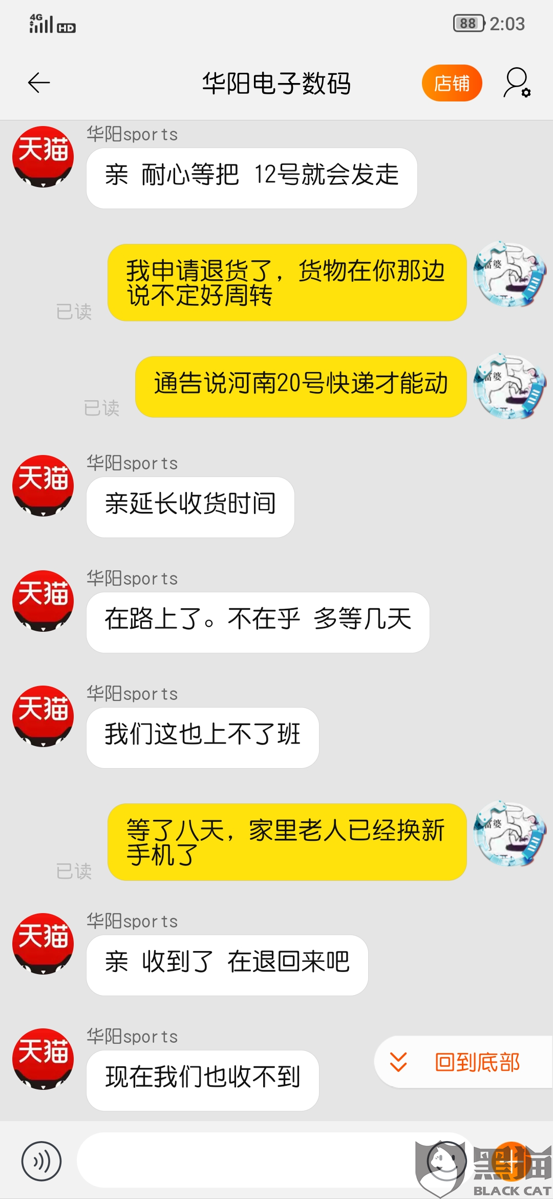 商家不回复 淘宝客服无法处理 要求退货退款