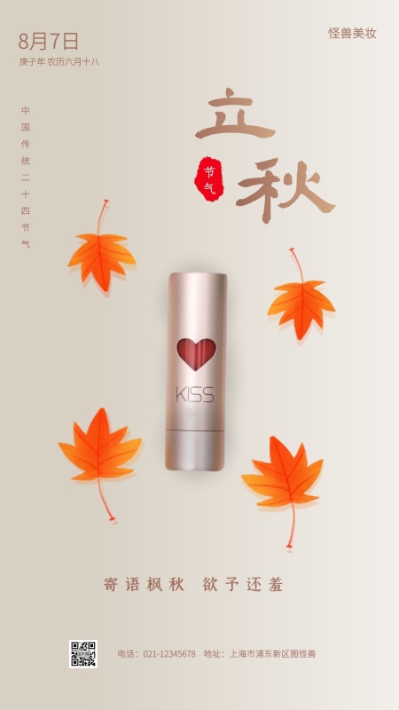 立秋传统节气美妆口红借势手机海报