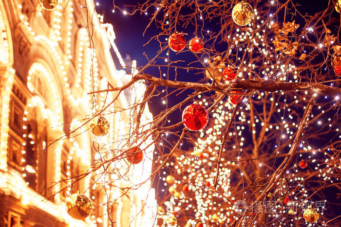 在莫斯科历史中心街道装饰新年和圣诞节的